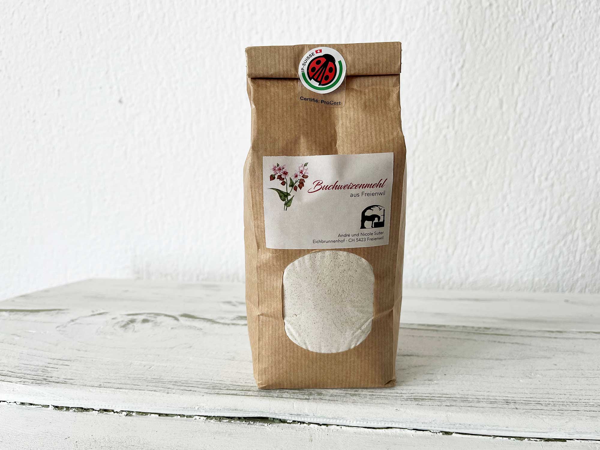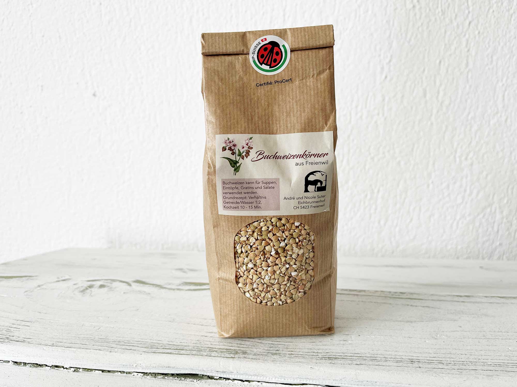 Von der Aussat bis zur Ernte vergehen lediglich 14 bis 18 Wochen, und der Buchweizen kommt gänzlich ohne Pflanzenschutzmittel aus. Unser Buchweizen wird nach dem Trocknen in der Ferrenmühle in Kleinwangen zu feinem Mehl vermahlen. Die Kleinmühle, die heute von der jungen Müllerin Ramona Eberli mit Liebe und Leidenschaft geführt wird, blickt auf eine über 800-jährige Tradition zurück, und die verwendeten Gerätschaften stammen aus der Zeit des Zweiten Weltkrieges.